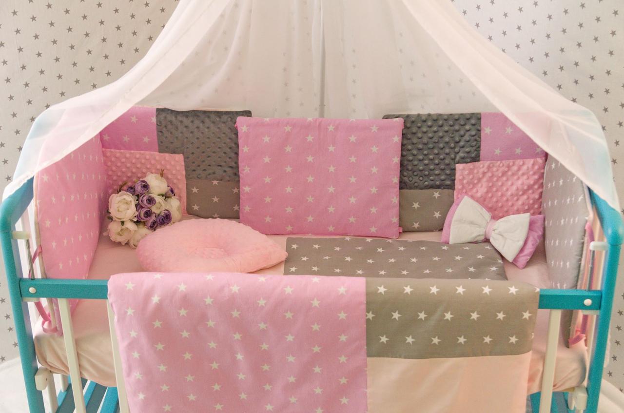 Комплект постельного белья Добрый Сон Eco 3 Minky серо-розовый со звёздами