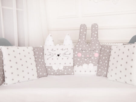 Бортики / защита- 8 ед.: один бортик со стороны изголовья кроватки (размер 60х40см, один в ногах и по три бортика ставятся по бокам кроватки (бортики закрывают весь периметр кроватки).